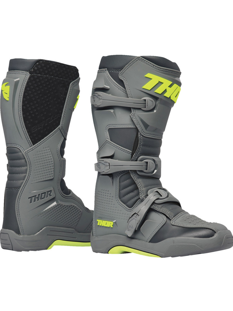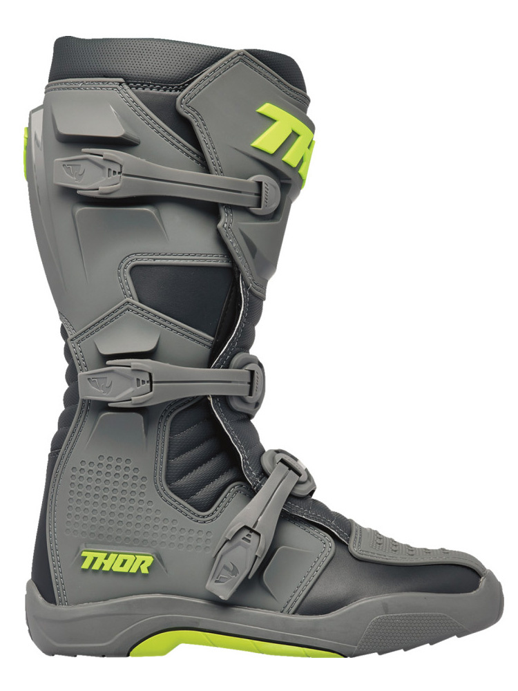 Buty THOR BLITZ XR przeszły rygorystyczne testy, które zapewniają doskonałą ochronę i wydajność. Zaprojektowane dla wymagająch wstępnie zakrzywiona płytka goleniowa gwarantuje niezrównaną ochronę nóg przed uderzeniami, dzięki czemu możesz śmiało stawić czoła każdemu wyzwaniu. Z łatwością dopasujesz buty korzystając z trzech regulowanych pasków, zapewniających wygodę i bezpieczeństwo.