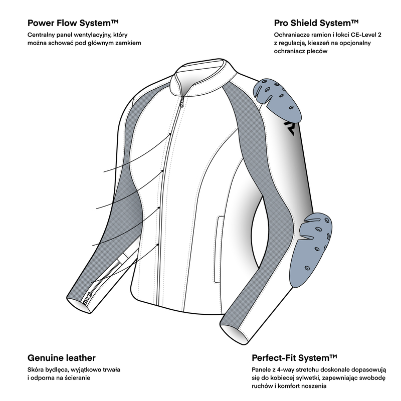 Kurtka Rebelhorn Siena Lady zapewnia wysoki poziom bezpieczeństwa dzięki ochraniaczom: