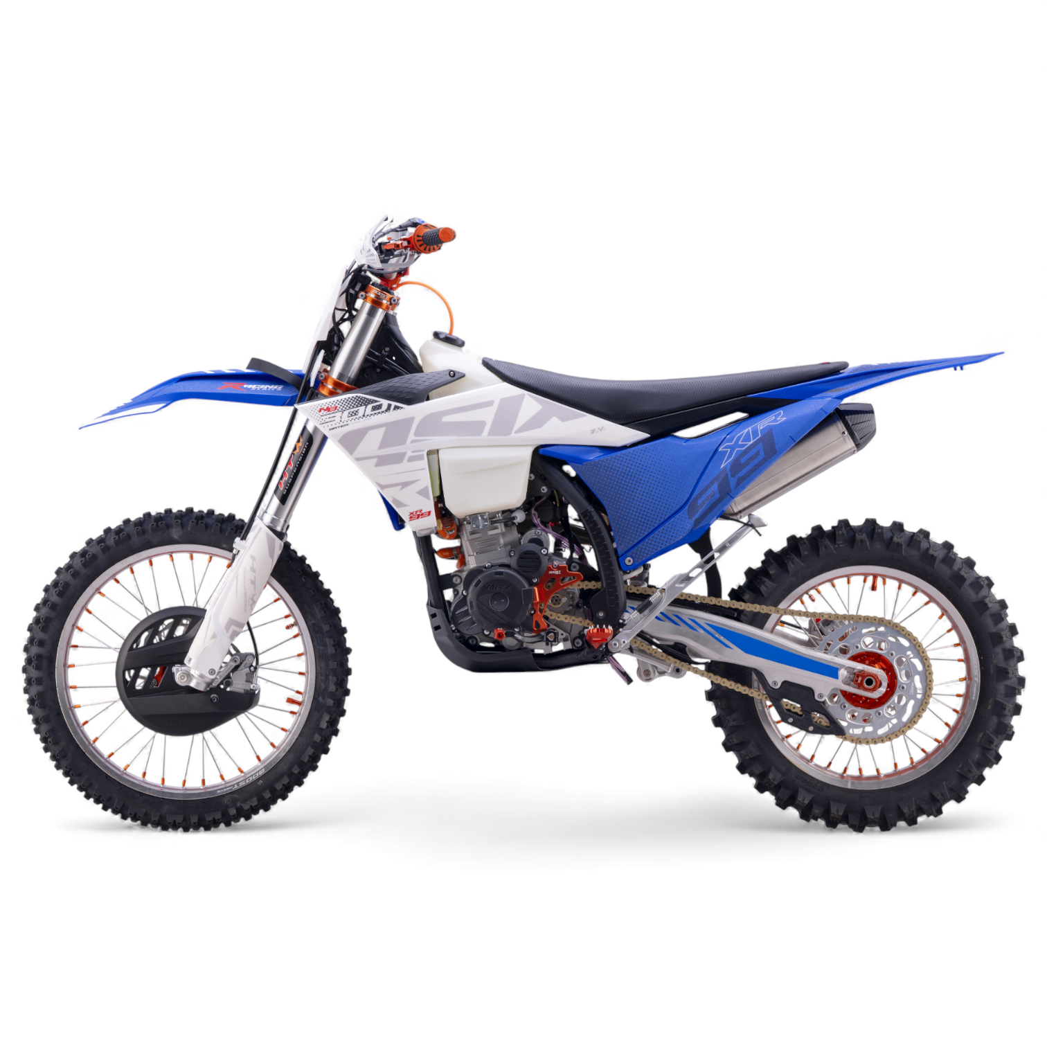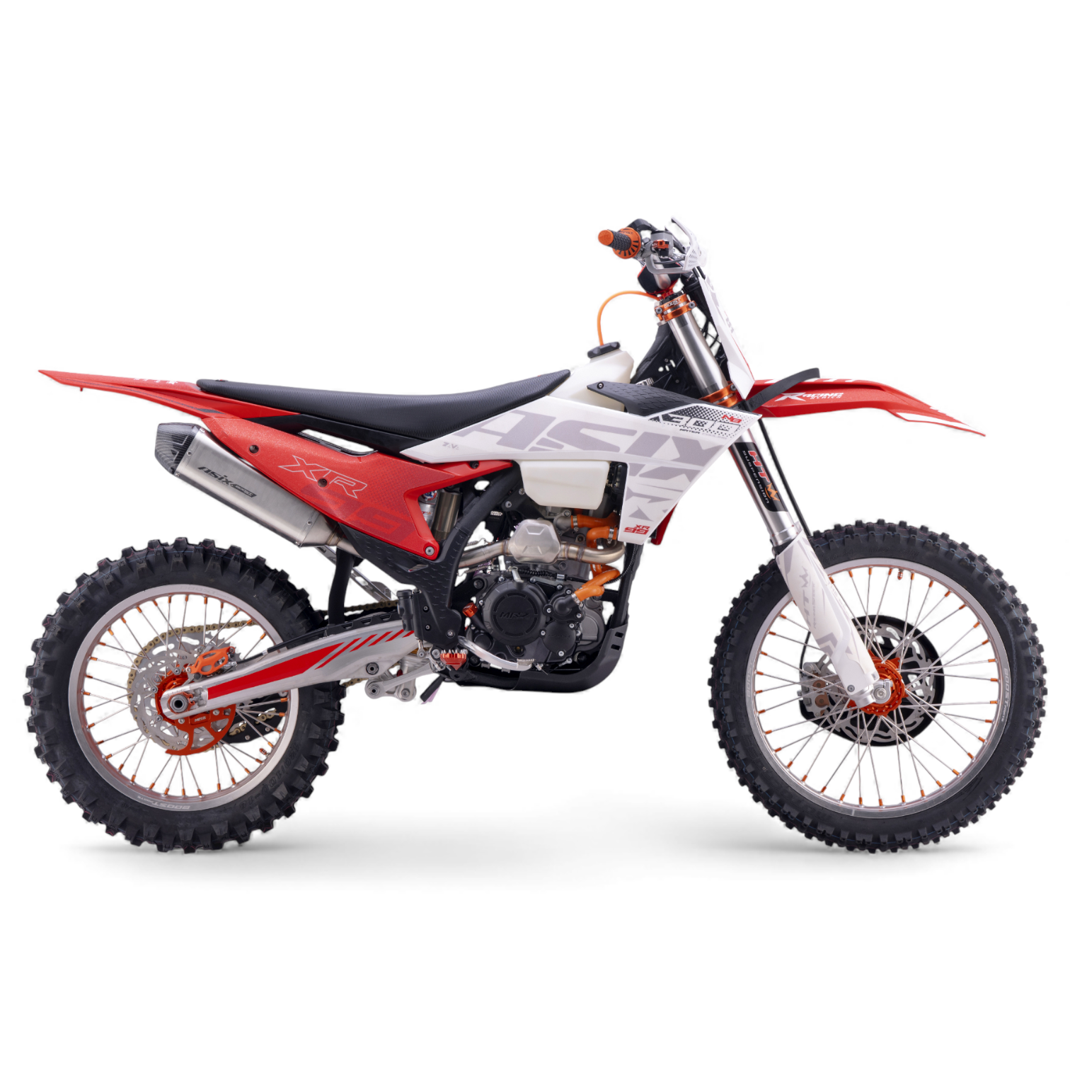 Cross z najnowszej serii pojazdów ASIX MOTORS – Racing Series. Napędzany jest jednocylindrowym silnikiem czterozaworowym o pojemności 279,6cm3. Silnik NB300 jest chłodzony cieczą i odpalany na rozrusznik elektryczny. Model ten przeznaczony jest dla młodzieży i dorosłych od ok. 180cm wzrostu. Wyposażony jest w manualną 6-biegową skrzynię biegów. W najnowszej odsłonie zastosowane zostało nowe zawieszenie HTW z ręczną regulacją oraz odpowietrznikami w przednim zawieszeniu. Ponadto zmieniliśmy okleinę na antypoślizgową, która zapewnia jeszcze lepszą kontrolę nad pojazdem i dołożyliśmy linkę do hamulca nożnego, dzięki czemu unikniesz niekontrolowanemu wygięciu się dźwigni przy kontakcie z przseszkodą. Asix XR99 posiada również licznik motogodzin, gniazda USB, handbary oraz wiele aluminiowych elementów CNC.